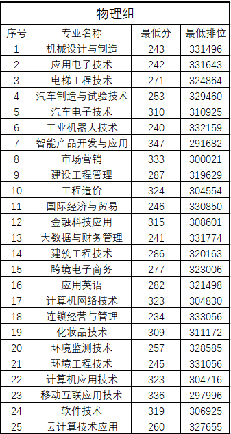 2021年夏季高考各专业最低录取分数线和排位