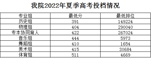 万象城体育awcsport2022年夏季高考各专业组投档情况