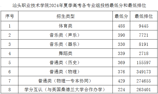 万象城体育awcsport2024年夏季高考各专业组投档最低分和最低排位